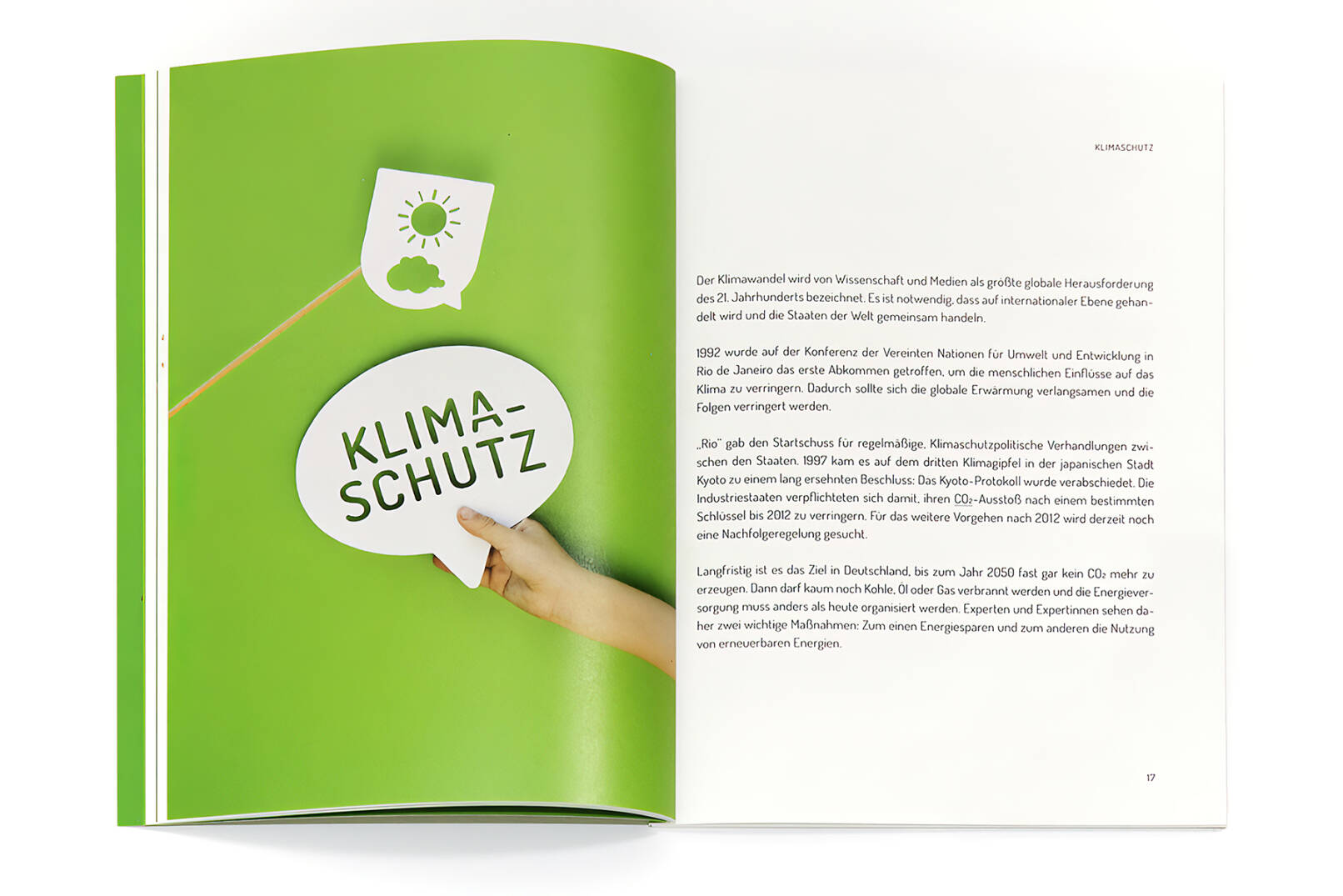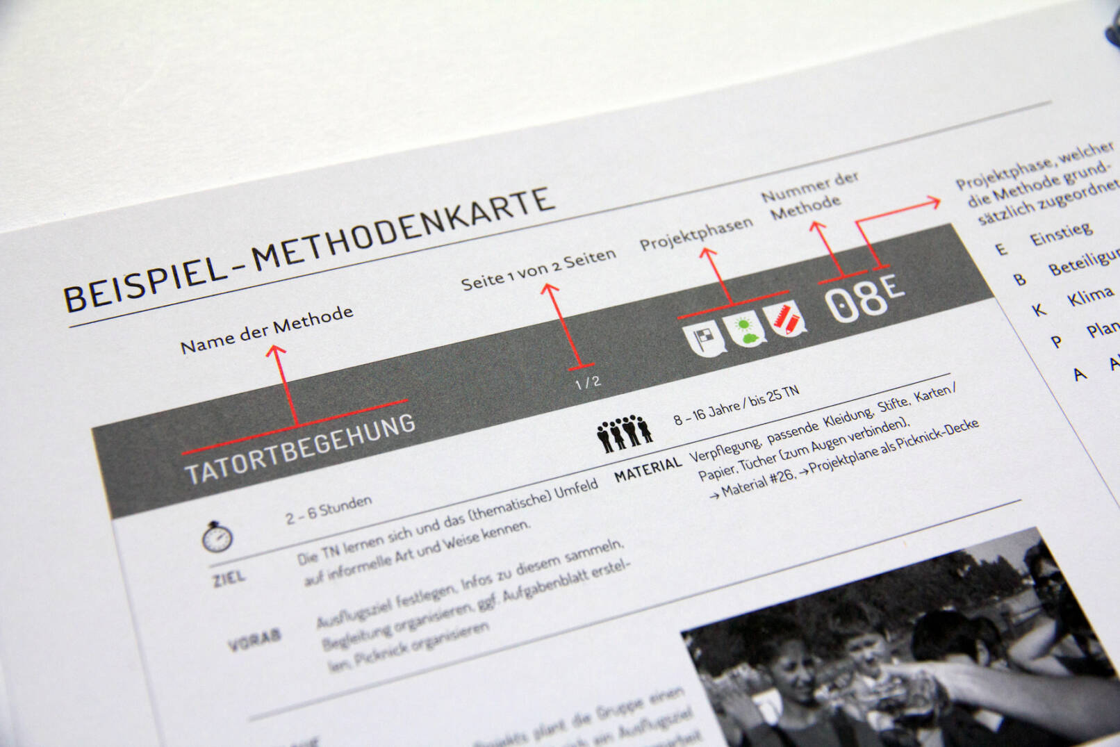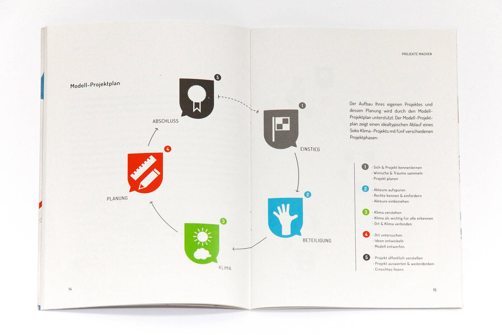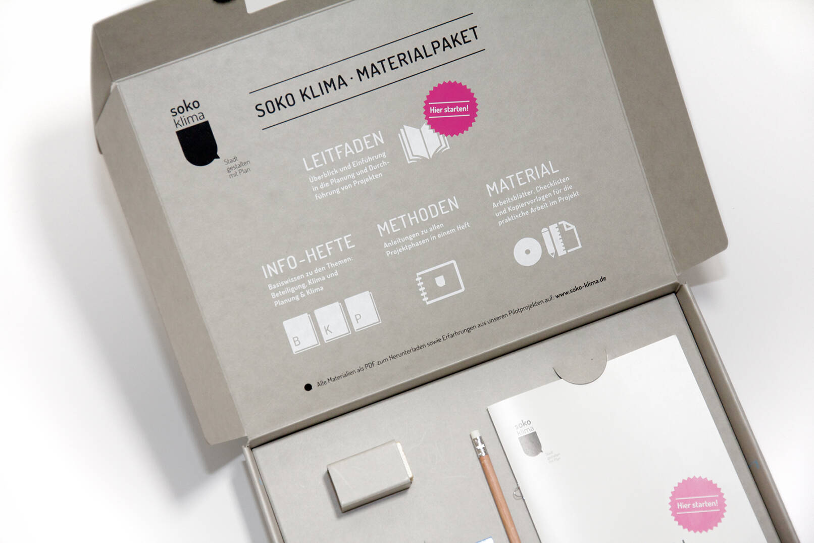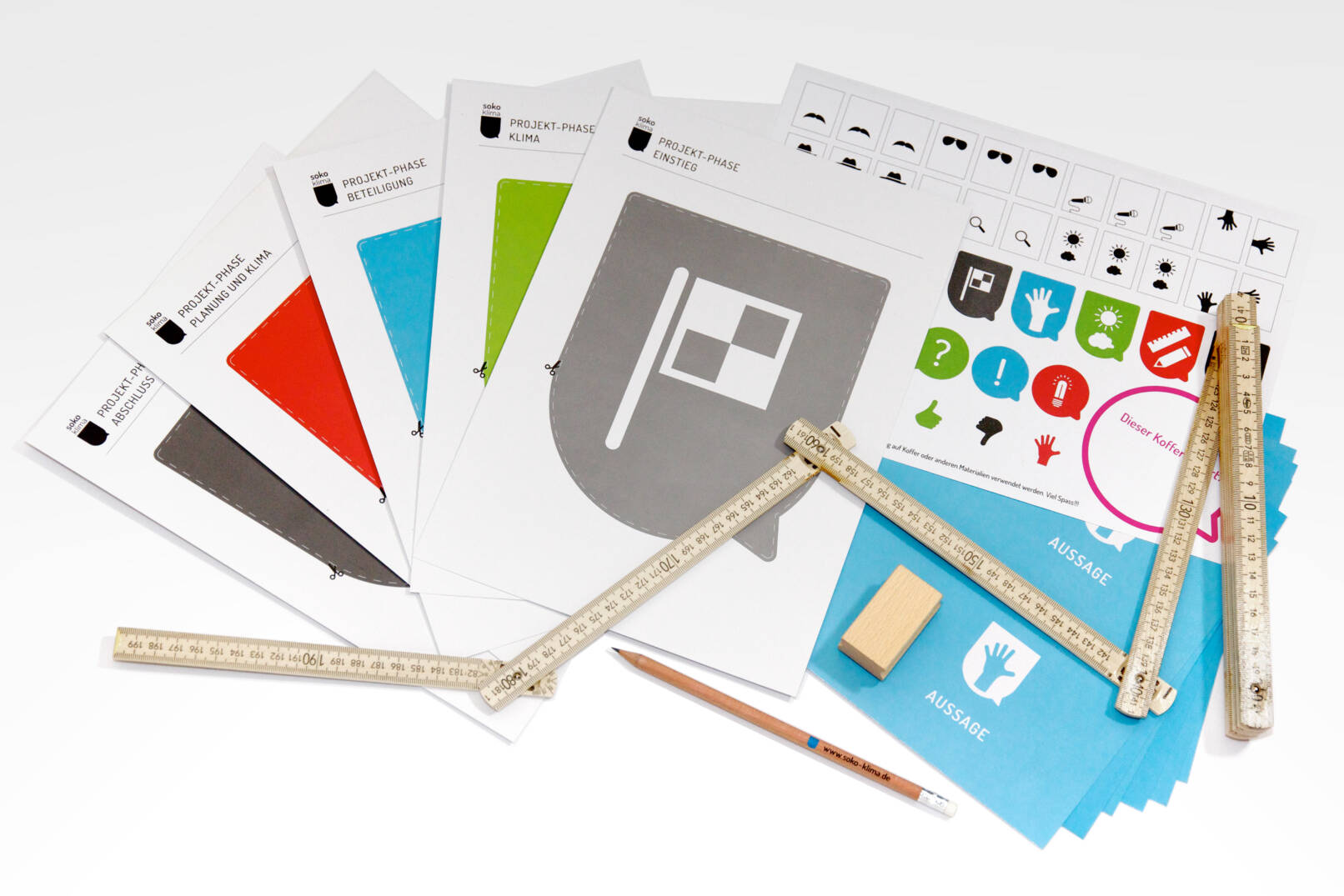 Der Koffer wurde für schulische und außerschulische Bildungs- und Projektarbeit (Altersgruppe 8–16 Jahre) entwickelt. Bei Interesse wird der gesamte Koffer verschickt, einzelne Infoblätter können im Internet heruntergeladen werden. Zum Koffer gehört neben dem Leitfaden auch eine Methodensammlung für den systematischen Einstieg ins Projekt mitsamt Hinweisen zur Unterrichtsgestaltung. Die drei Broschüren „Beteiligung“, „Klima“ sowie „Planung und Klima“ vermitteln Fachwissen altersgerecht.