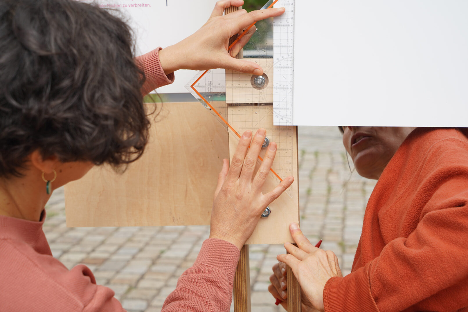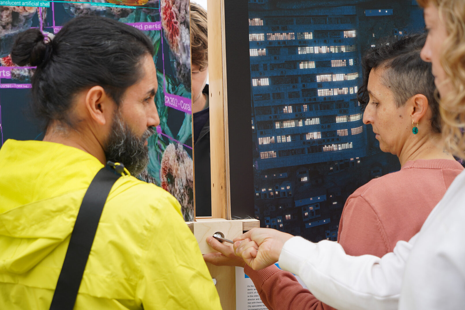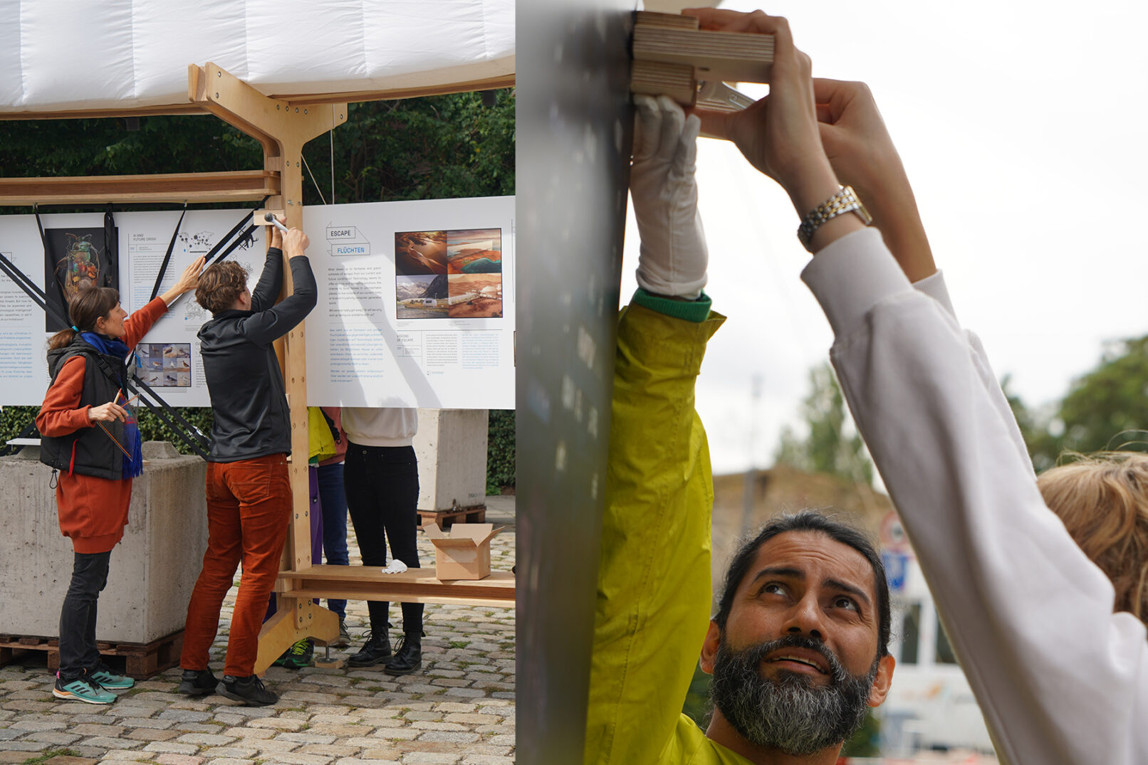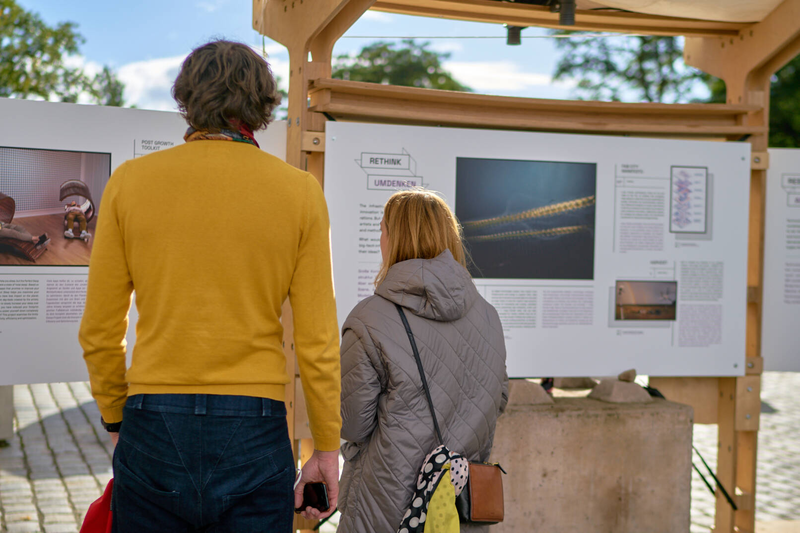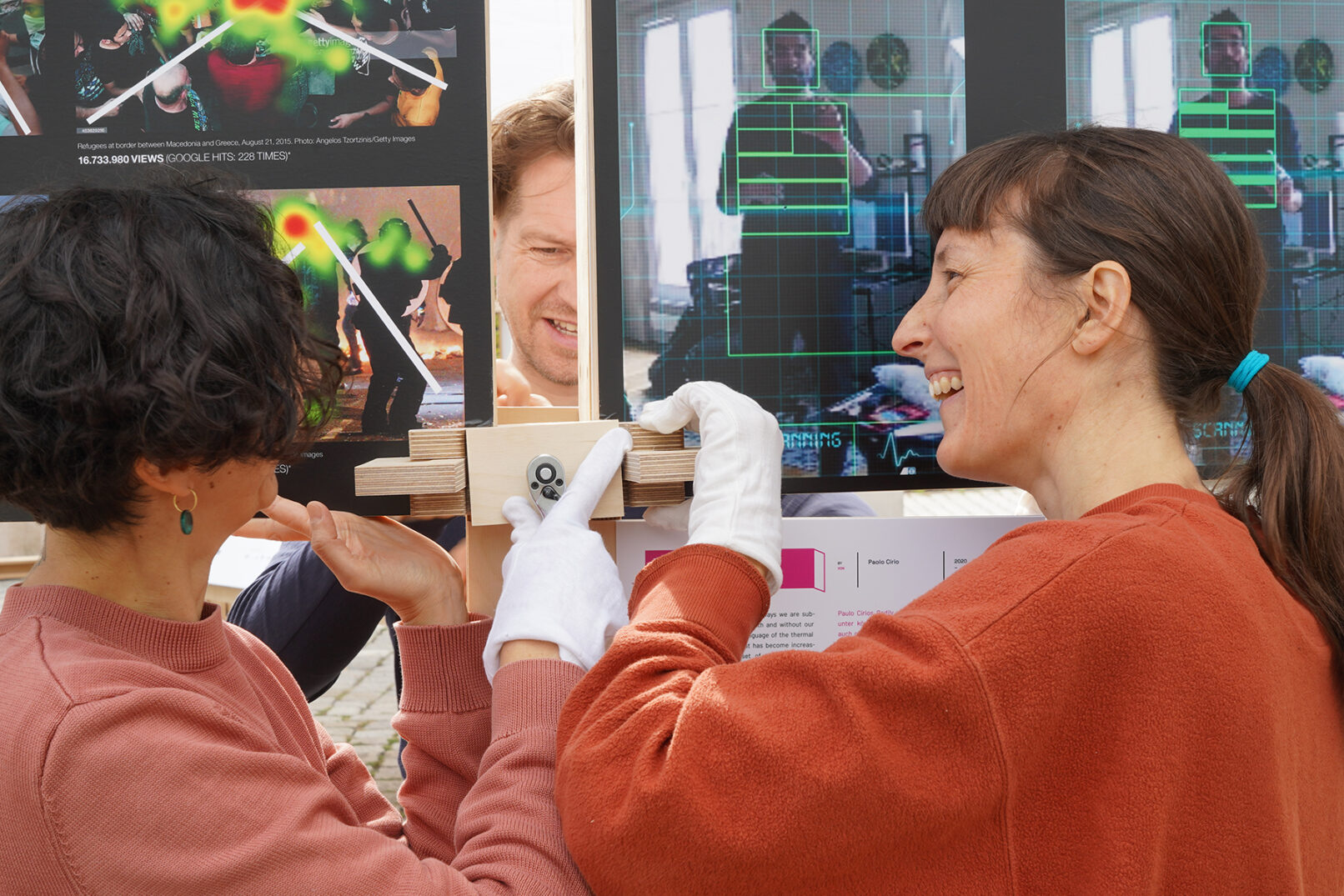 The striking white balloon ring invited visitors to take a closer look at the open-air exhibition in front of the German Museum of Technology. Large-format artworks on the themes of Digital Panic, Caution, Doubt, and Hope greeted visitors. La Loma designed the 20 inner panels of the exhibition ring, presenting different perspectives on the four theme areas through interventions, investigations, research projects, and artworks. Each area ended with an interactive spectogram, inviting guests to actively participate and express their opinions.